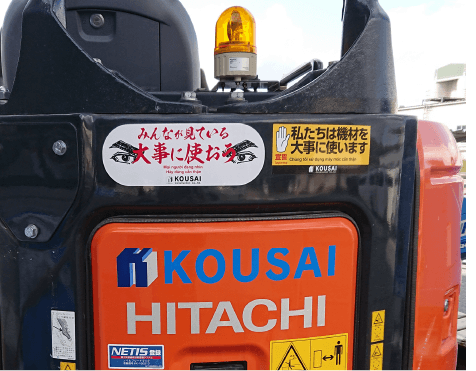 当社は5Sに“D=大事に使う”を付け加えた、5S+Dを徹底しています。例えば重機をはじめとした機材に弊社オリジナルのステッカーを貼り付け、従業員への注意喚起を徹底しています。こうした小さな努力の積み重ねが、ミスや事故のリスクを減らし、高い生産性を保証しております。