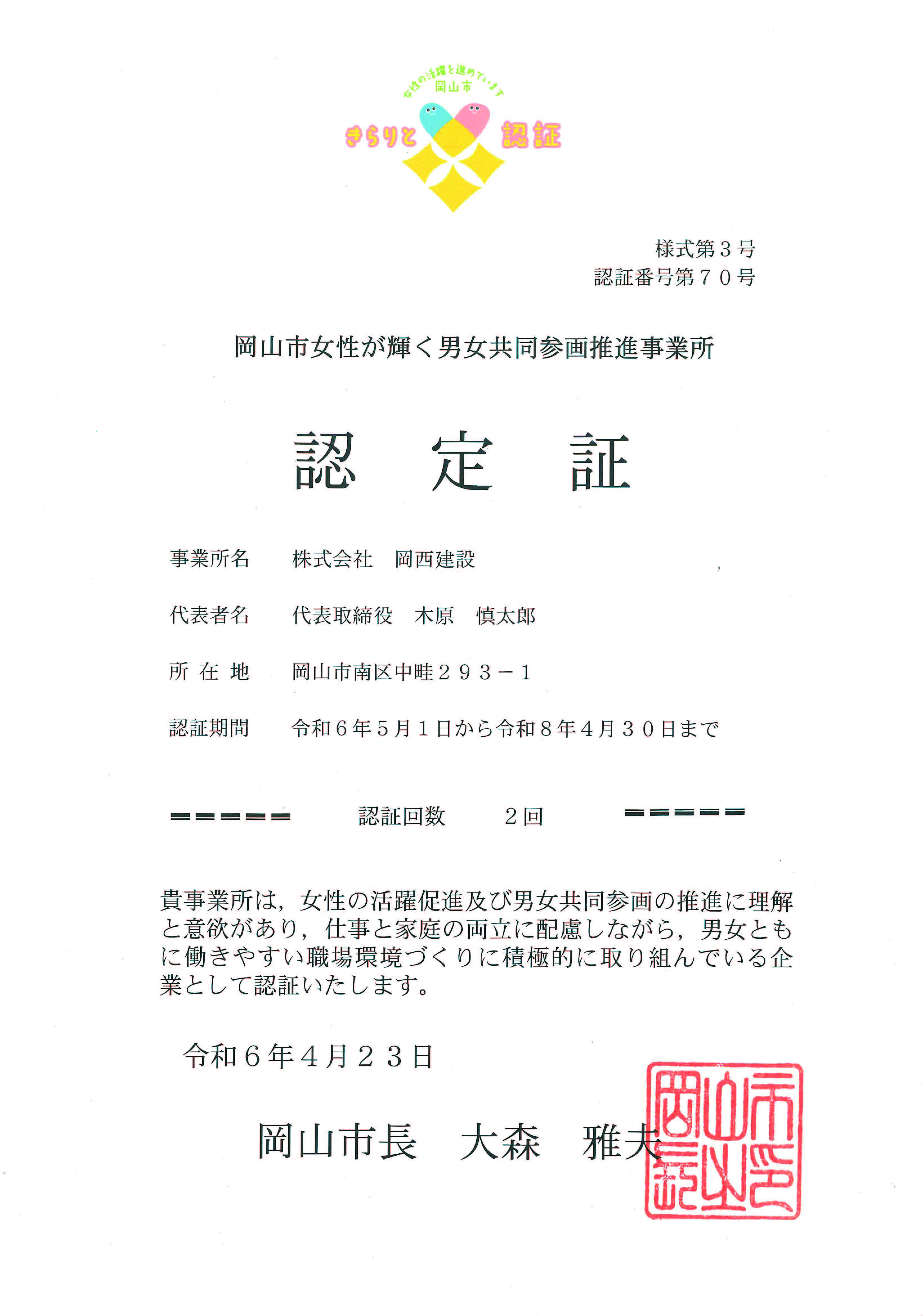 年1月25日に認証取得いたしました。